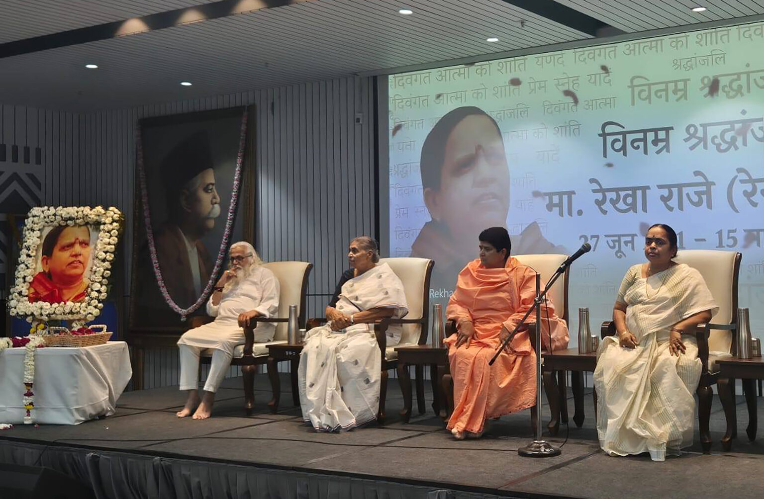 विभिन्न संस्थाओं के संदेशों का वाचन तथा उत्तर क्षेत्र प्रचारिका एवं अखिल भारतीय तरुणी प्रमुख मा. विजया जी द्वारा प्रस्तुत एकल गीत ने वातावरण को अत्यंत भावपूर्ण बना दिया। सभा का समापन शांति मंत्र के साथ हुआ। रेखा ताई का जीवनकार्य आने वाली पीढ़ियों के लिए सदैव प्रेरणा और मार्गदर्शन का प्रकाशस्तंभ बना रहेगा।